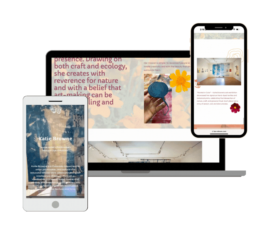 For textile artist Katie Browne, I designed a soulful, custom website in under one week. The project included a full homepage rewrite with brand-aligned copywriting, and bespoke graphic elements that echoed her botanical dyeing practice. I crafted a tone that honored her artistry while supporting visibility for commissions, workshops, and wholesale offerings—resulting in a site that feels both editorial and earthy.